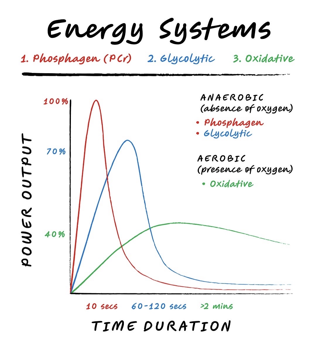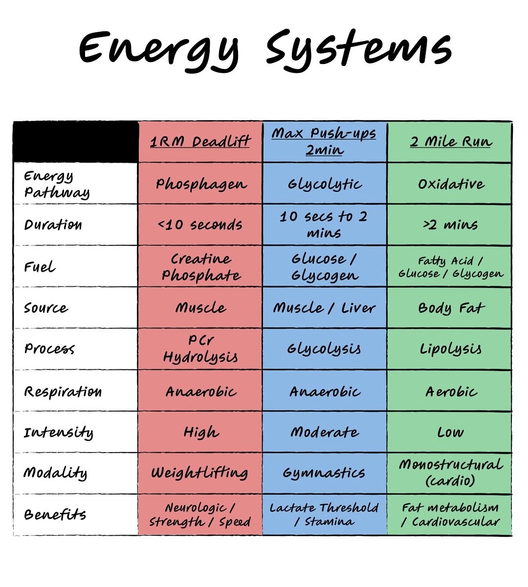 There are three distinct biochemical means by which energy is provided for all human action. These “metabolic engines” are known as the phosphagen pathway, the glycolytic pathway, and the oxidative pathway.